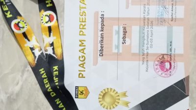 Lahat, lubaiaktual.com – 4 April 2026– Prestasi membanggakan kembali ditorehkan oleh Ahmad Elang Perdana Al Aziz, siswa SMP Negeri 2 Lahat, yang saat ini duduk di kelas 8.5. Ia sukses meraih medali emas di kelas Komite -63 Putra ,dalam ajang Kejuaraan Daerah (Kejurda) INKAI se-Sumatera Selatan yang digelar di Palembang.